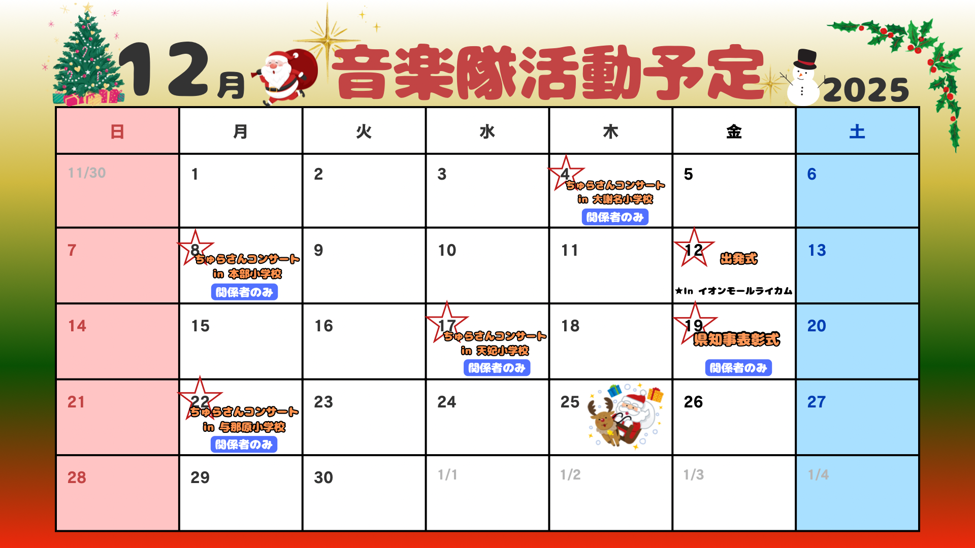 ・12/4 (木)・・・ ちゅらさんコンサート (順次更新予定)
